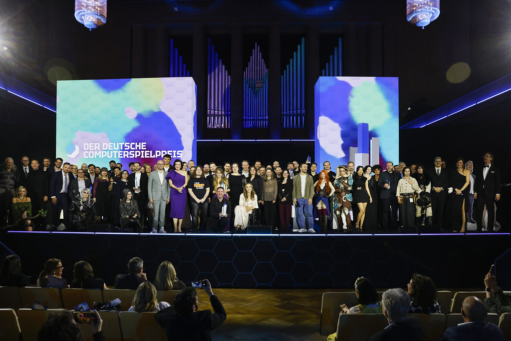 MUNICH, GERMANY – APRIL 29: Groupshot of the winners during the Deutscher Computerspielpreis at Hercules Hall on April 29, 2026 in Munich, Germany. (Photo by Franziska Krug/game Verband der deutschen Games-Branche via Getty Images)